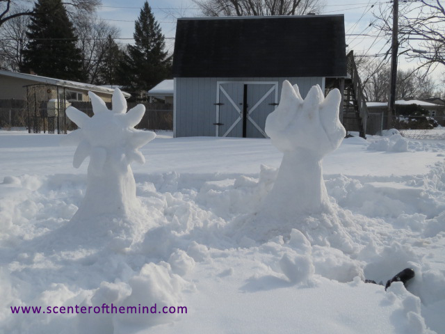 With the snow being so wet it really does hold together well and is just right for making a snowman, however, I have flowers in mind.